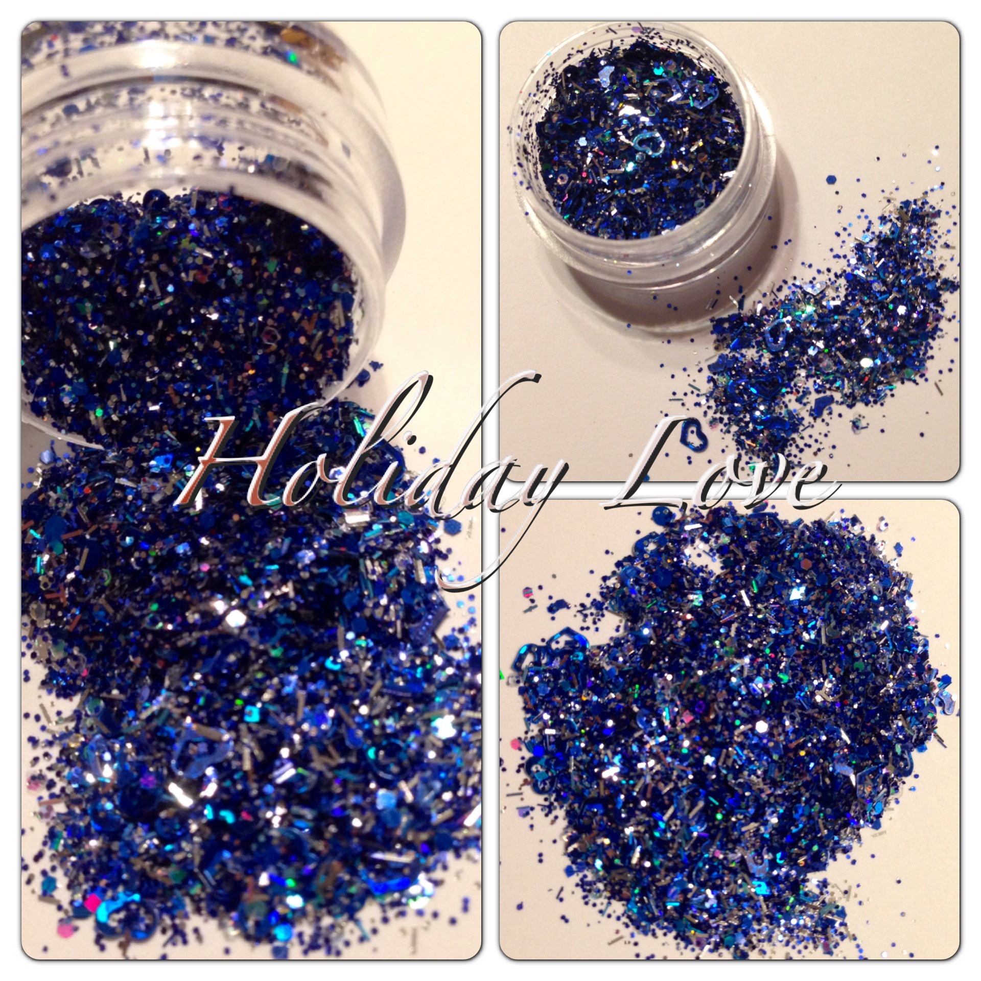 This is a beautiful Blue and Silver sparkling Christmas mix. This mix consist of a beautiful Royal Blue mix with a variety of blue and silver fine holographic glitter, hexagon, tinsel and hollow stars.