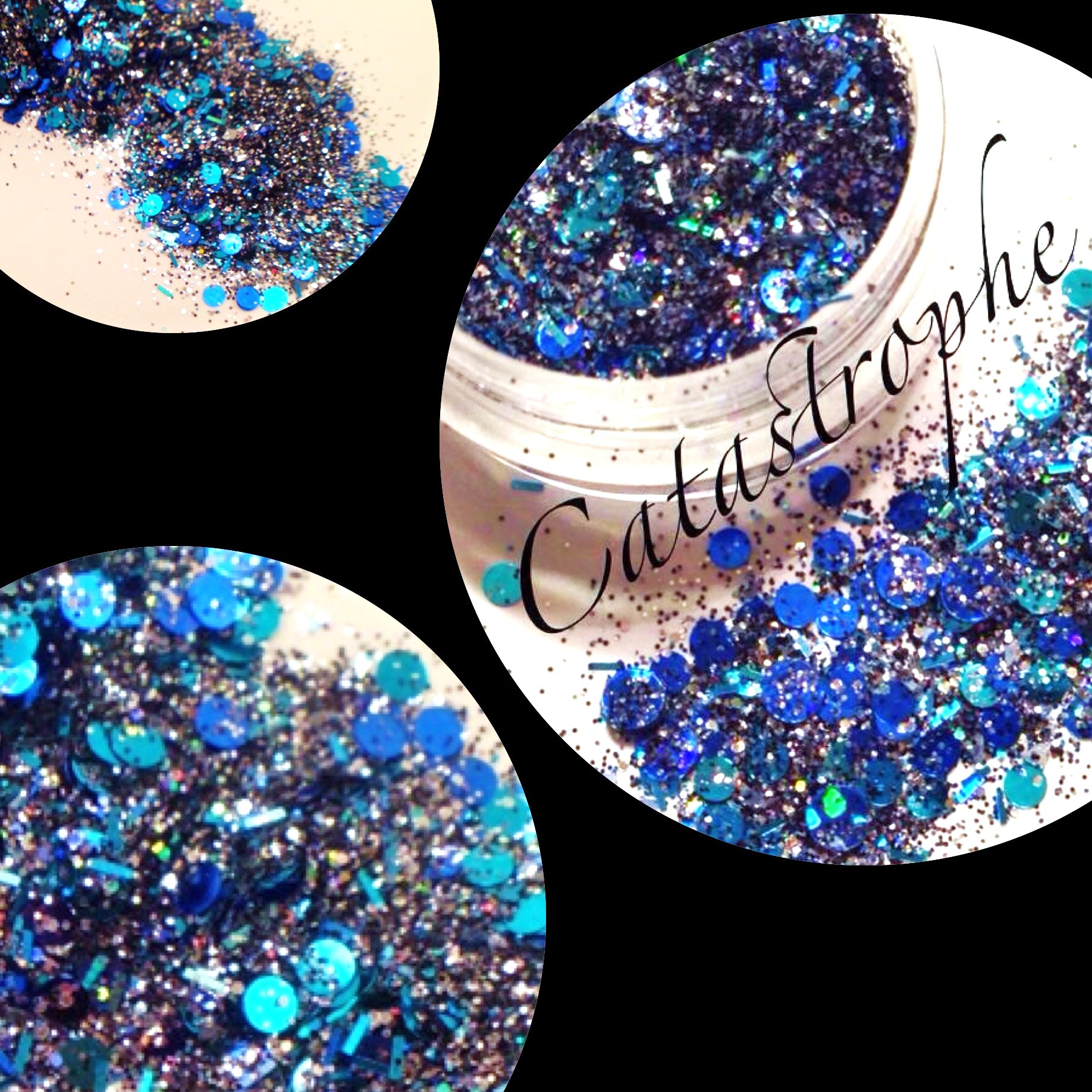 This is a beautiful blue, silver and black glitter mix. This mix consist of a variety of blue holographic glitter, tinsel and round glitters dots.
