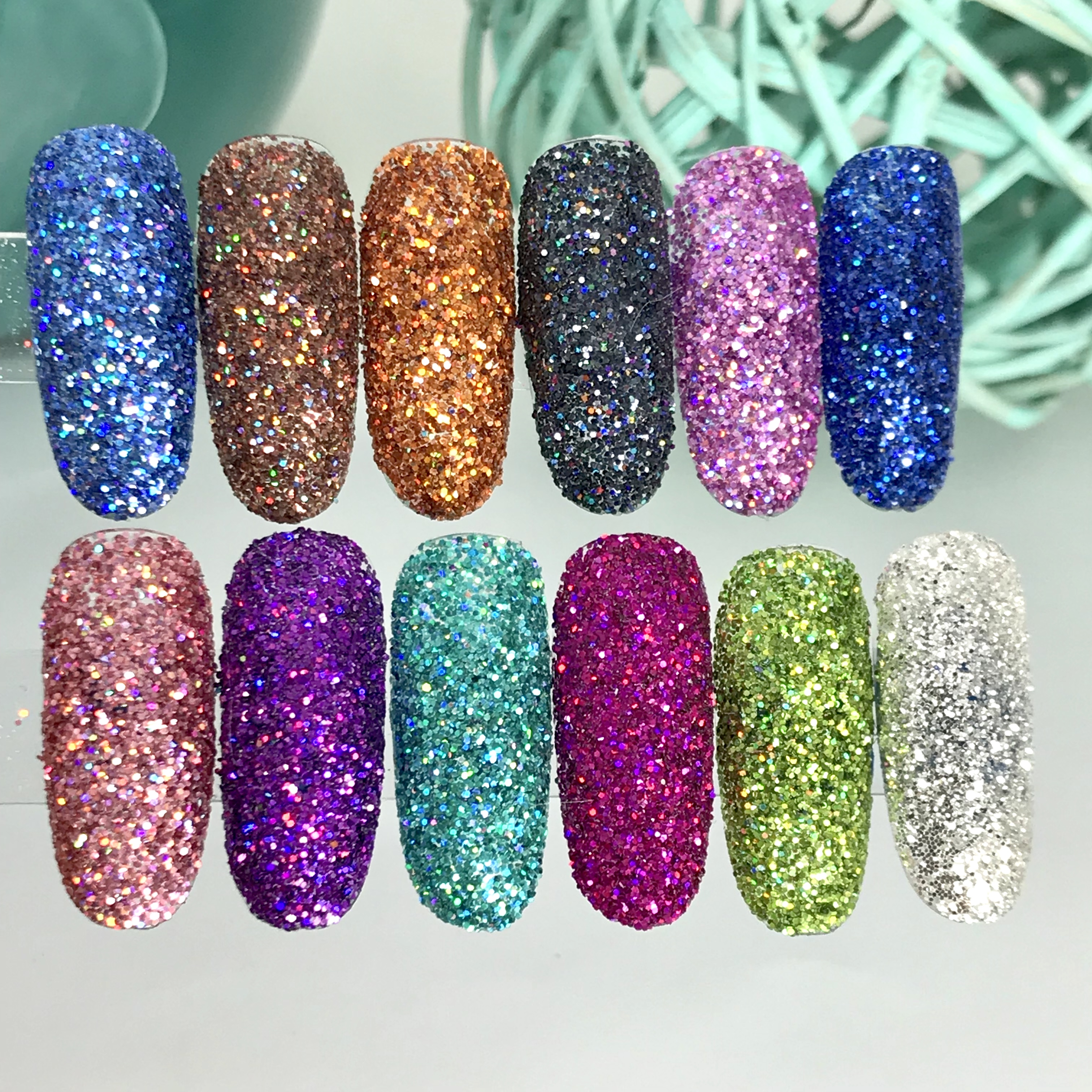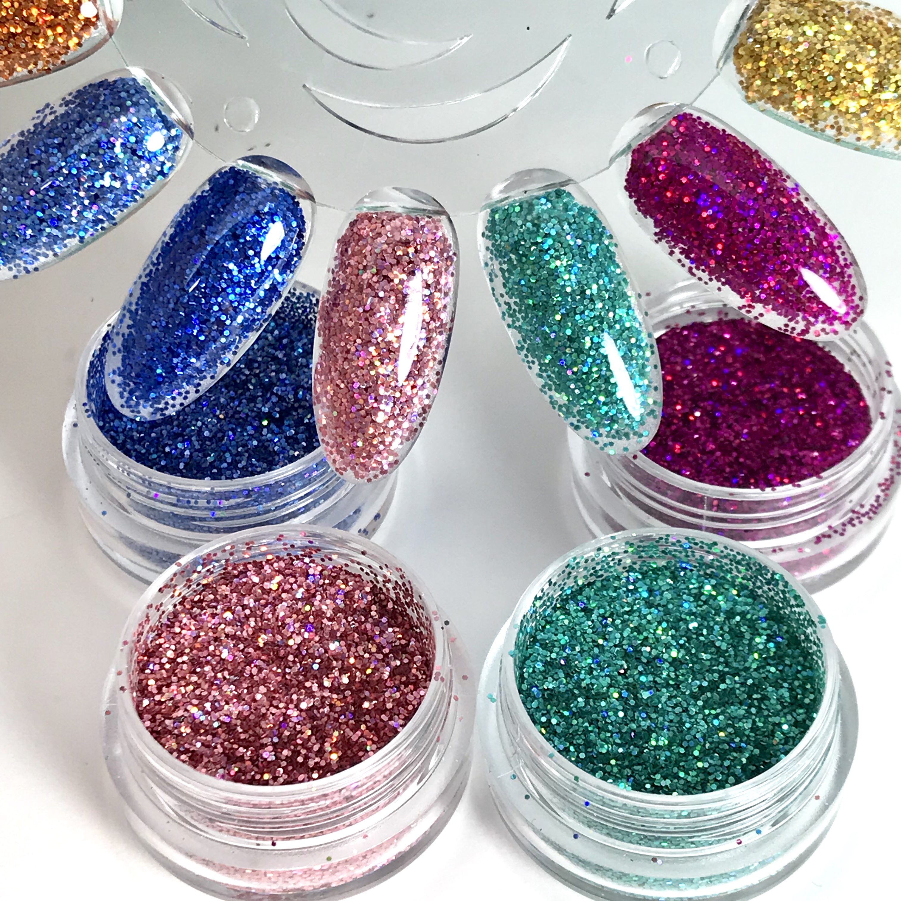 Our Laser Holographic Glitter can be mixed with a variety of glitters or it can also be used to create sugaring and fading effect nail art.