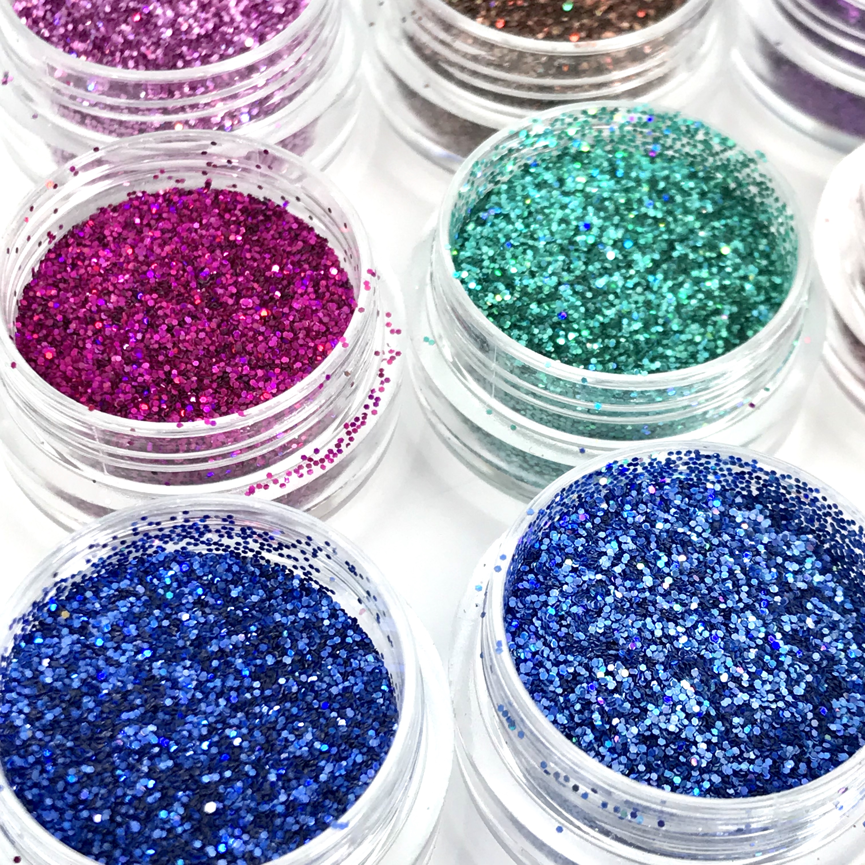 Our glitters are offered raw for you to mix with your desired medium. Acrylic, Gel, Polish, Makeup, Scrap Booking, Crafts, Candle Making and more!!