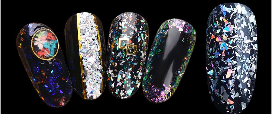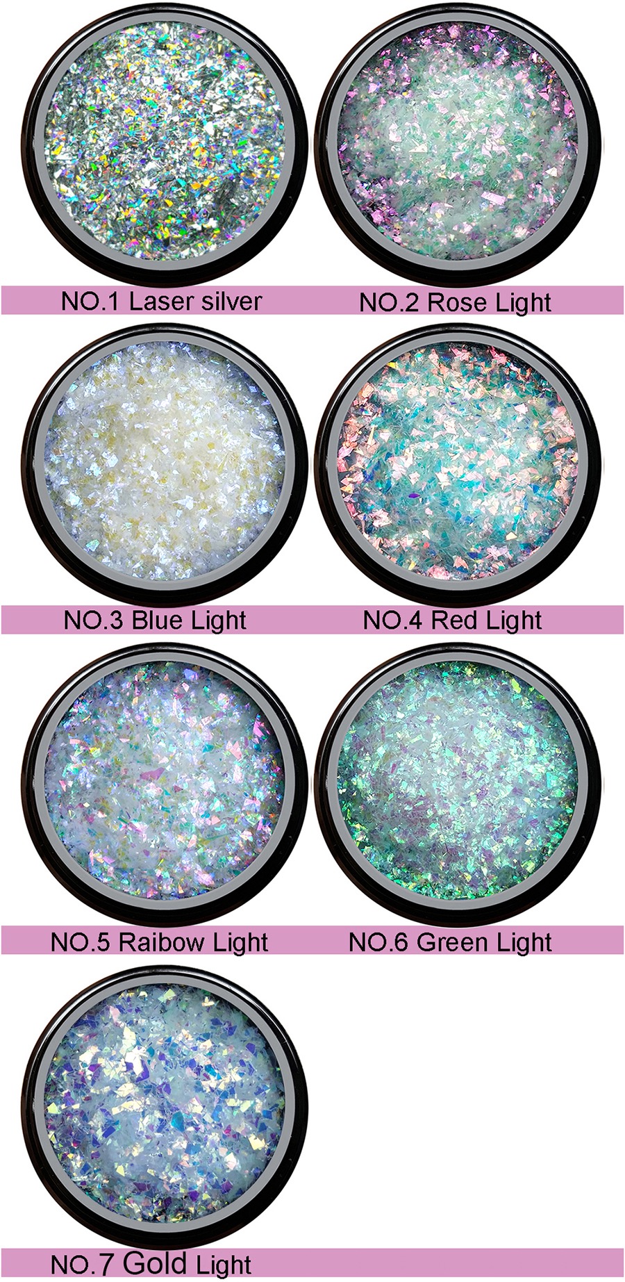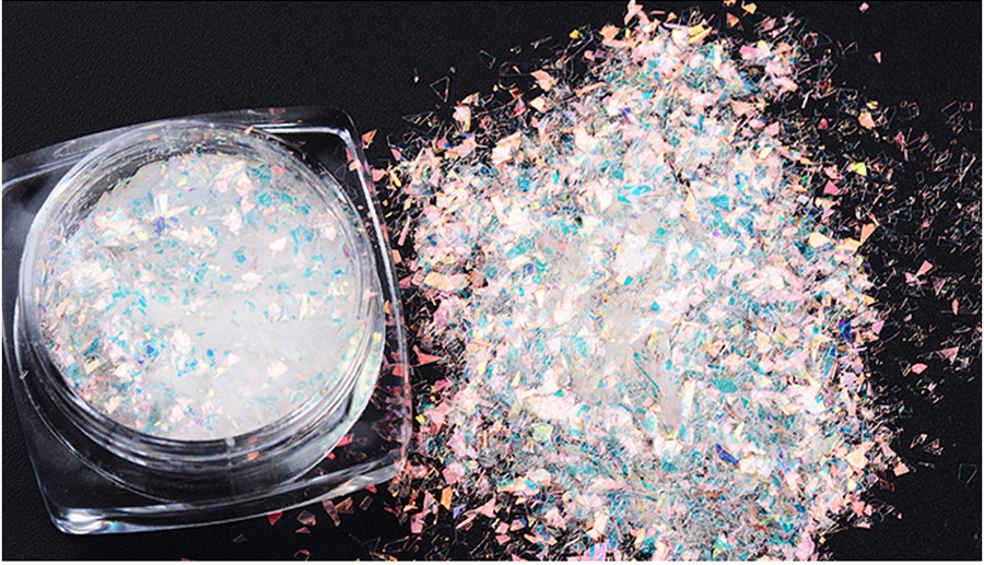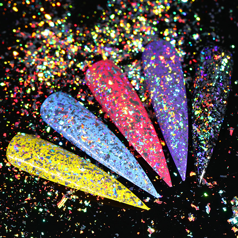 Holographic & Rainbow Iridescent Mylar Flake will add a brilliant rainbow holo and Ice effect to your nails!