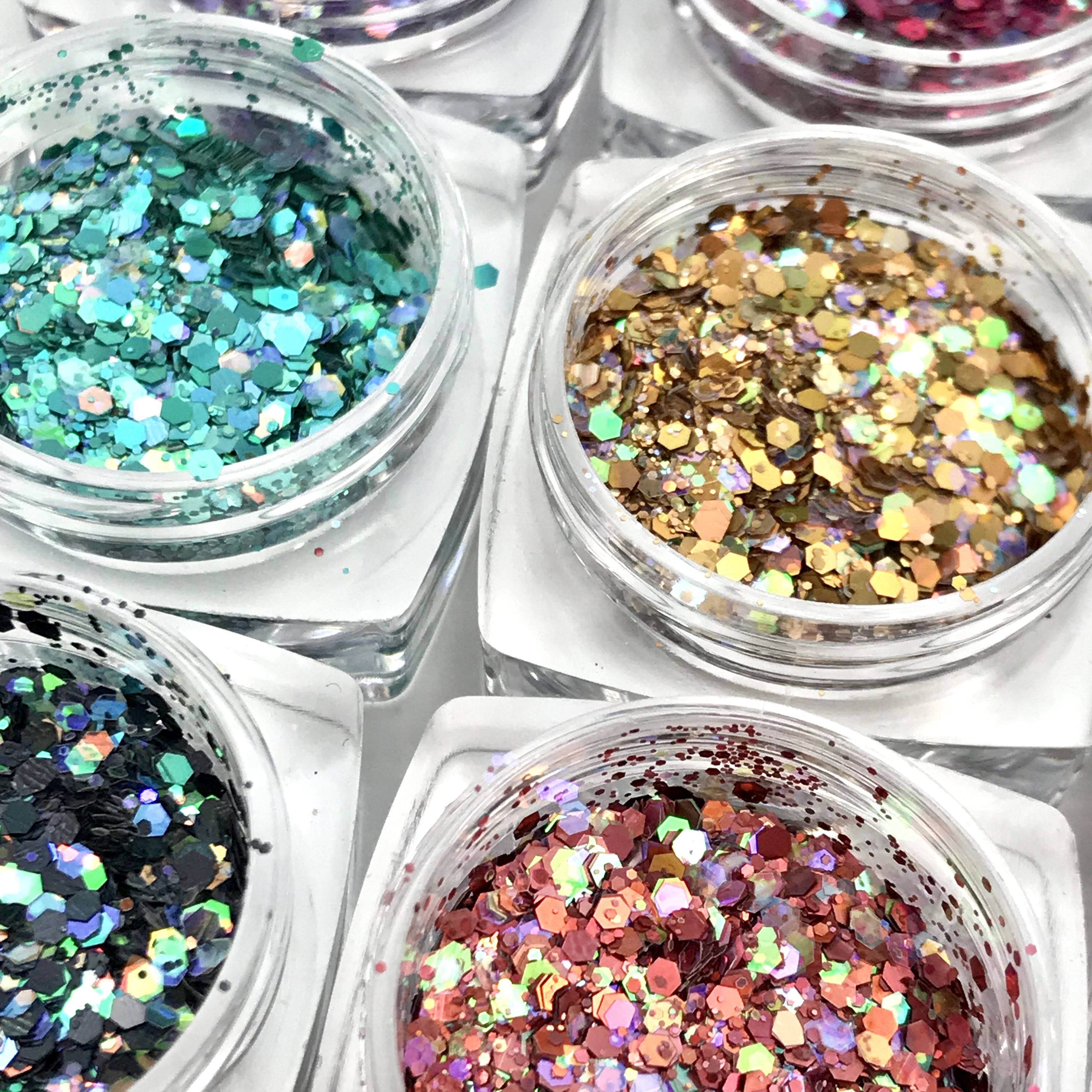 Each Glitter Mix is combined to create a unique and distinct product with style.