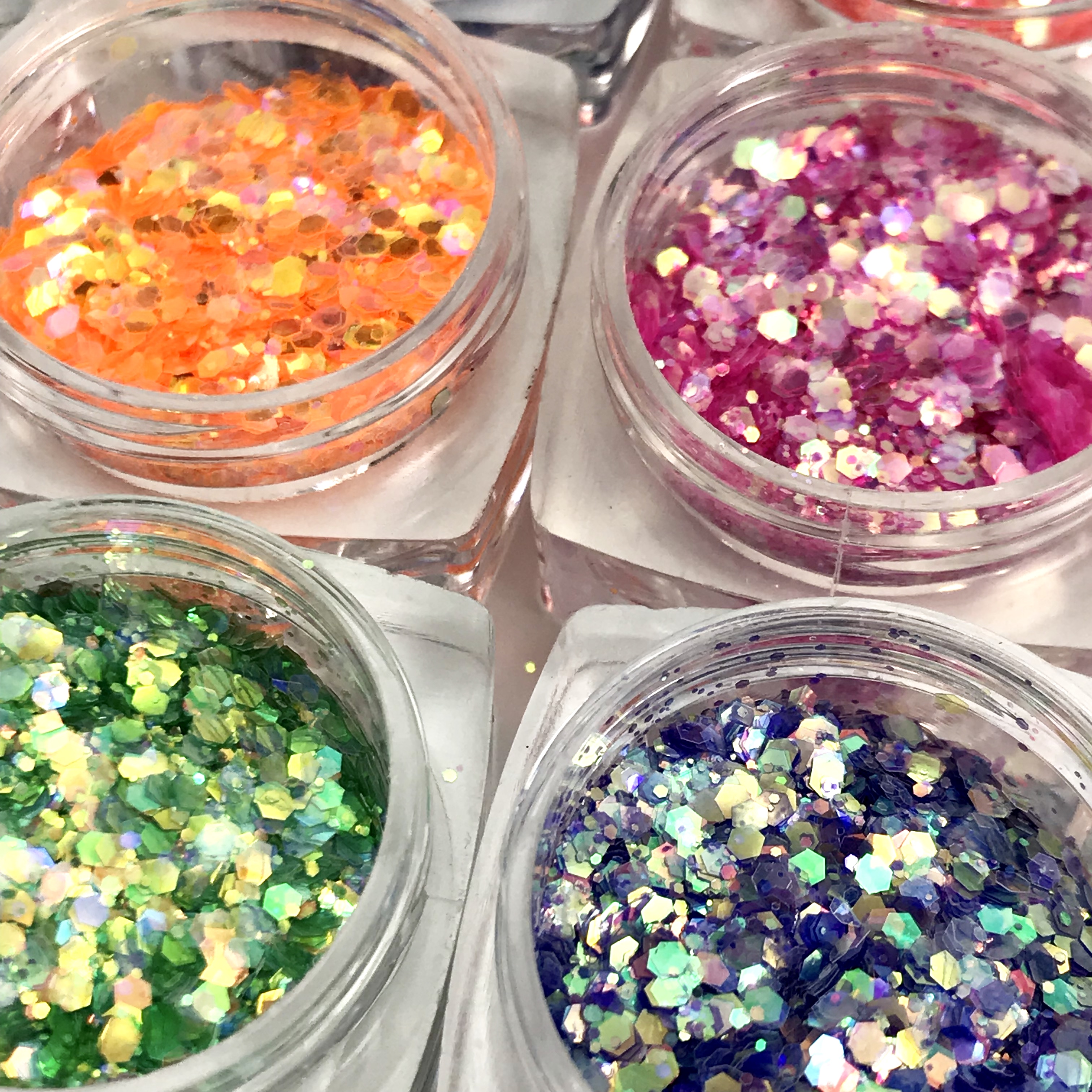 Each Glitter Mix is combined to create a unique and distinct product with style.