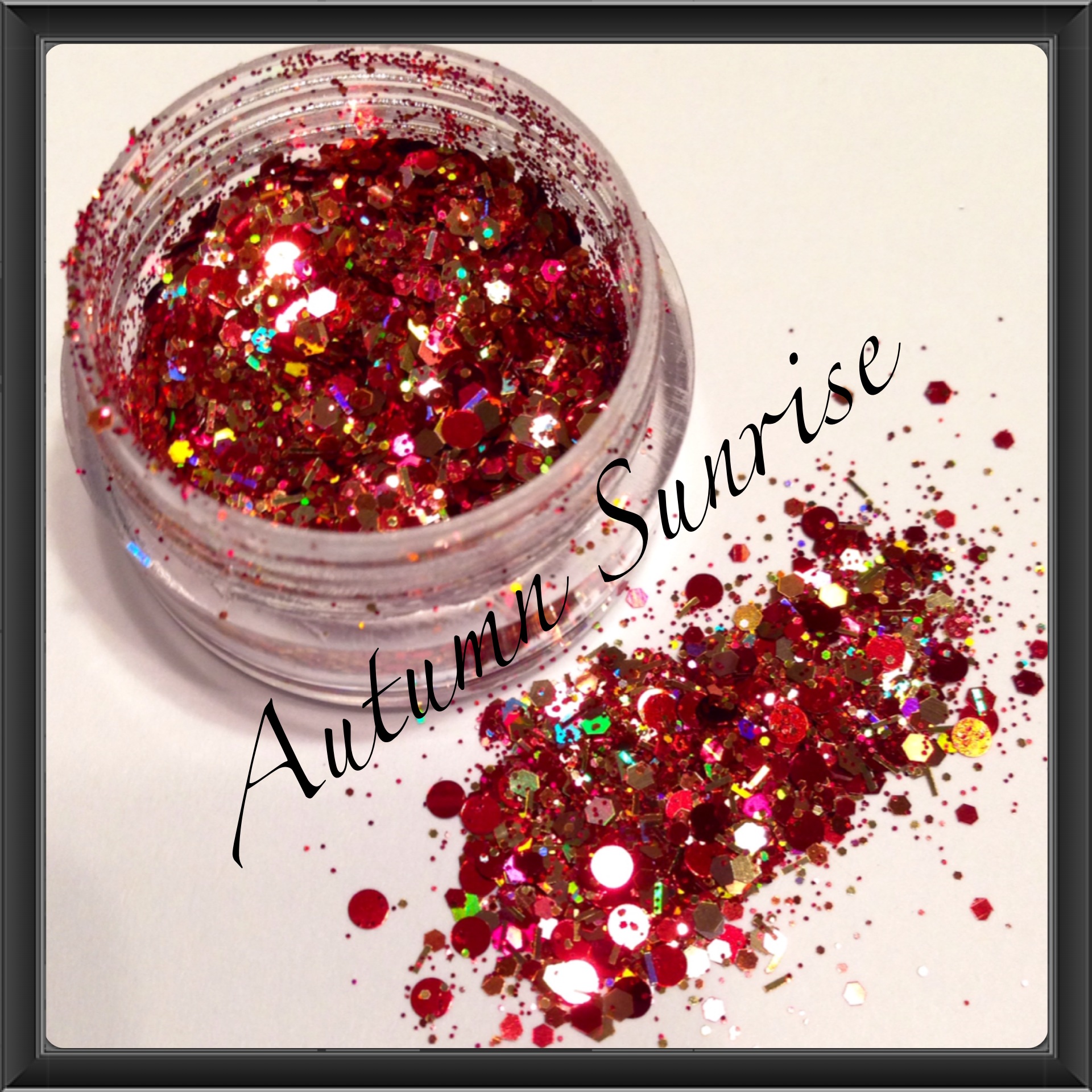 This is a beautiful Red and Gold sparkling mix. This mix consist of a variety of Red and Gold holographic glitter that is perfect for Fall Season.