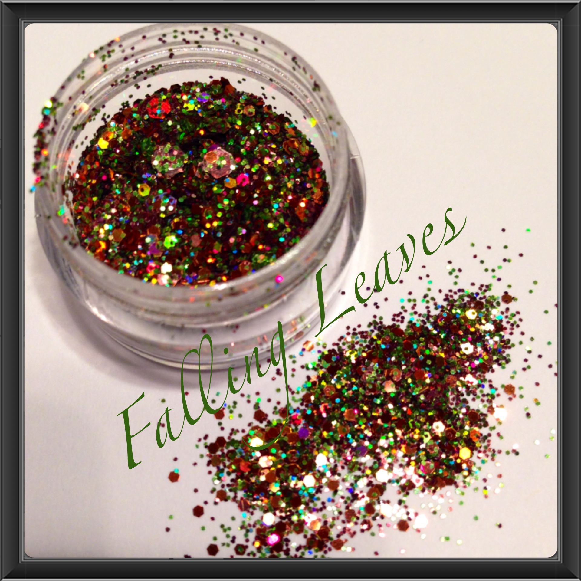 Beautiful green and brown custom mix. This mix consist of a variety of brown and green holographic glitter and hexagon in different sizes.