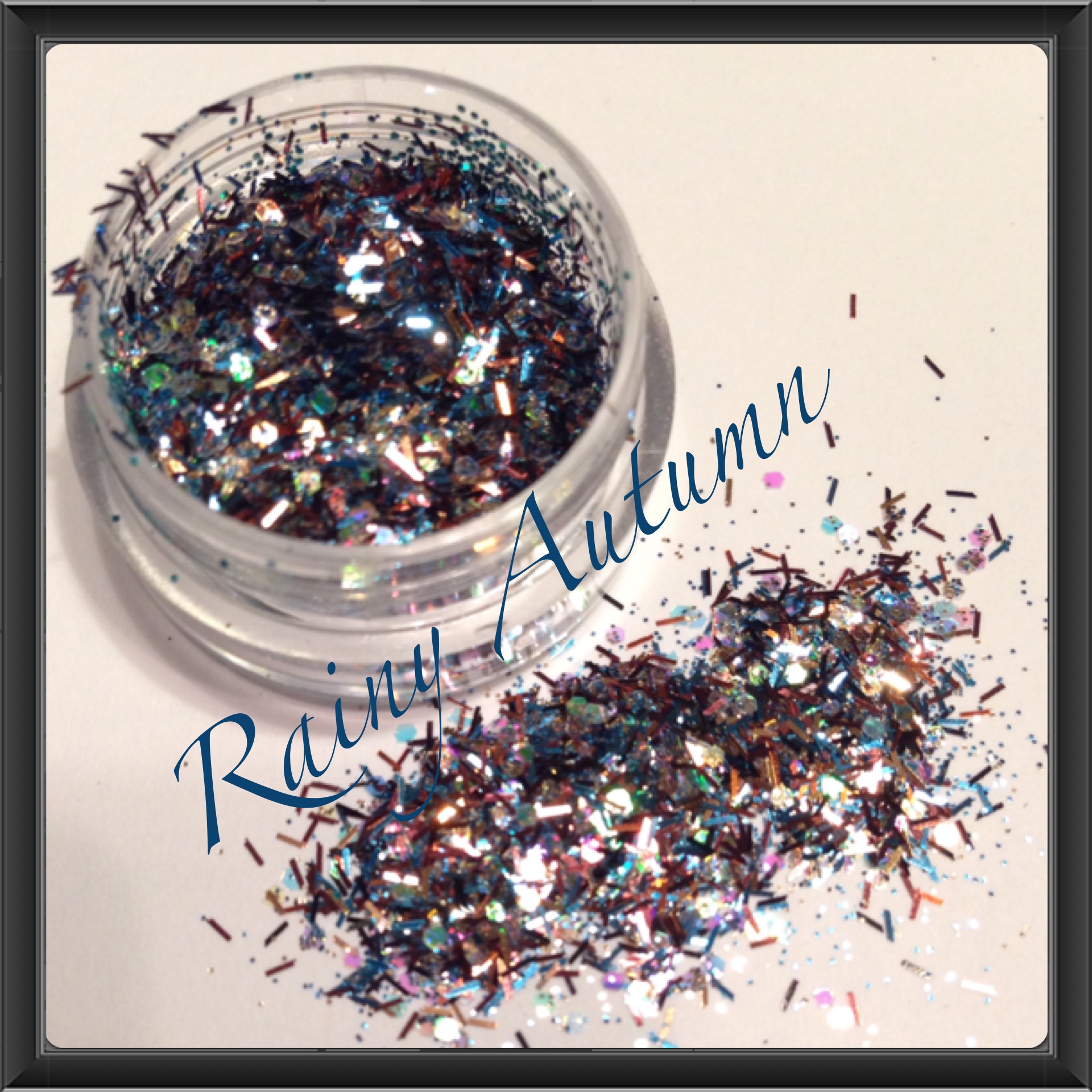 Beautiful brown and blue mix. This mix consist of a variety of tinsel glitters, hexagon and fine holographic glitter.