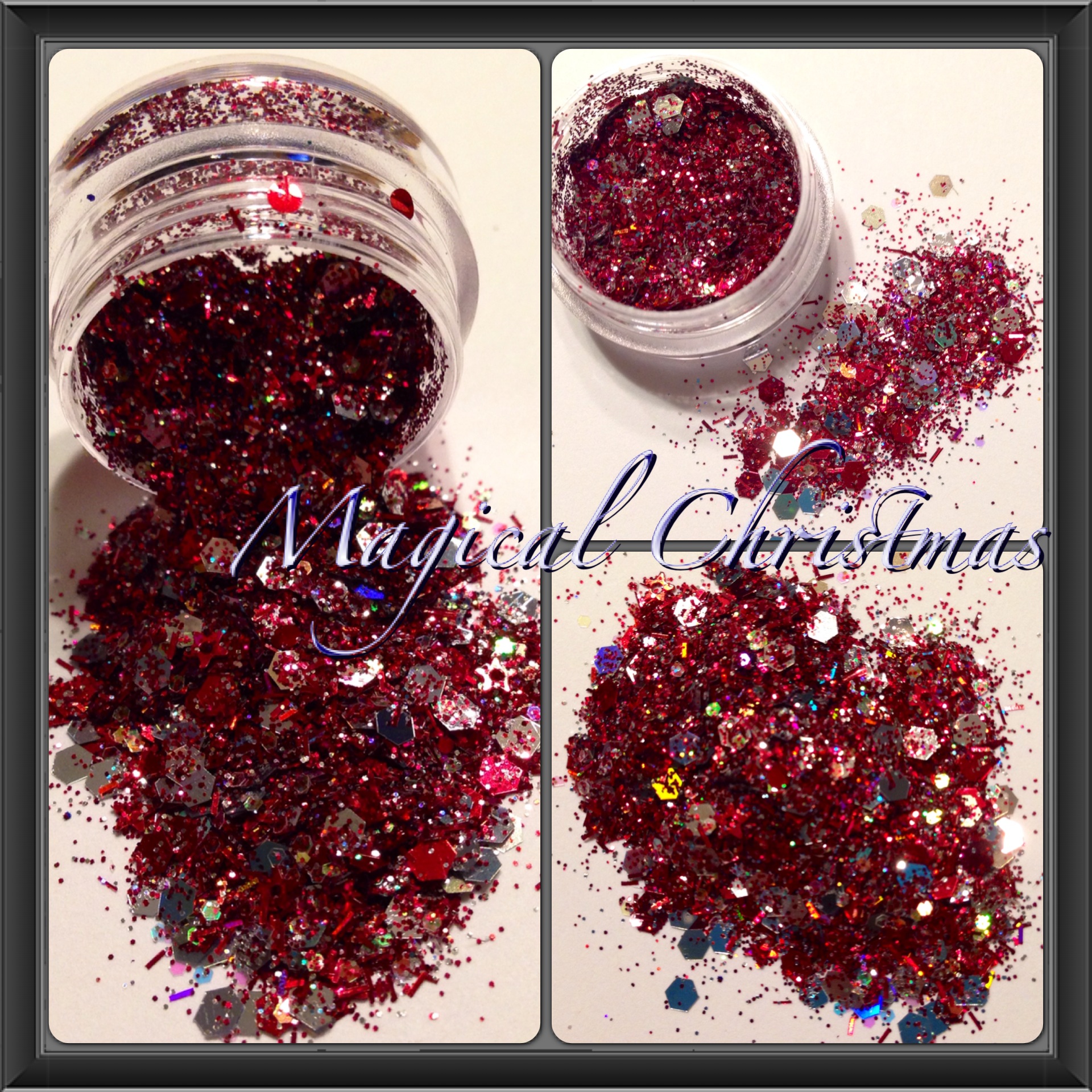 Beautiful red and silver sparkling Christmas mix. This mix consist of a variety of red tinsel glitters, red and silver hexagon, red fine holographic glitter and red hollow star.