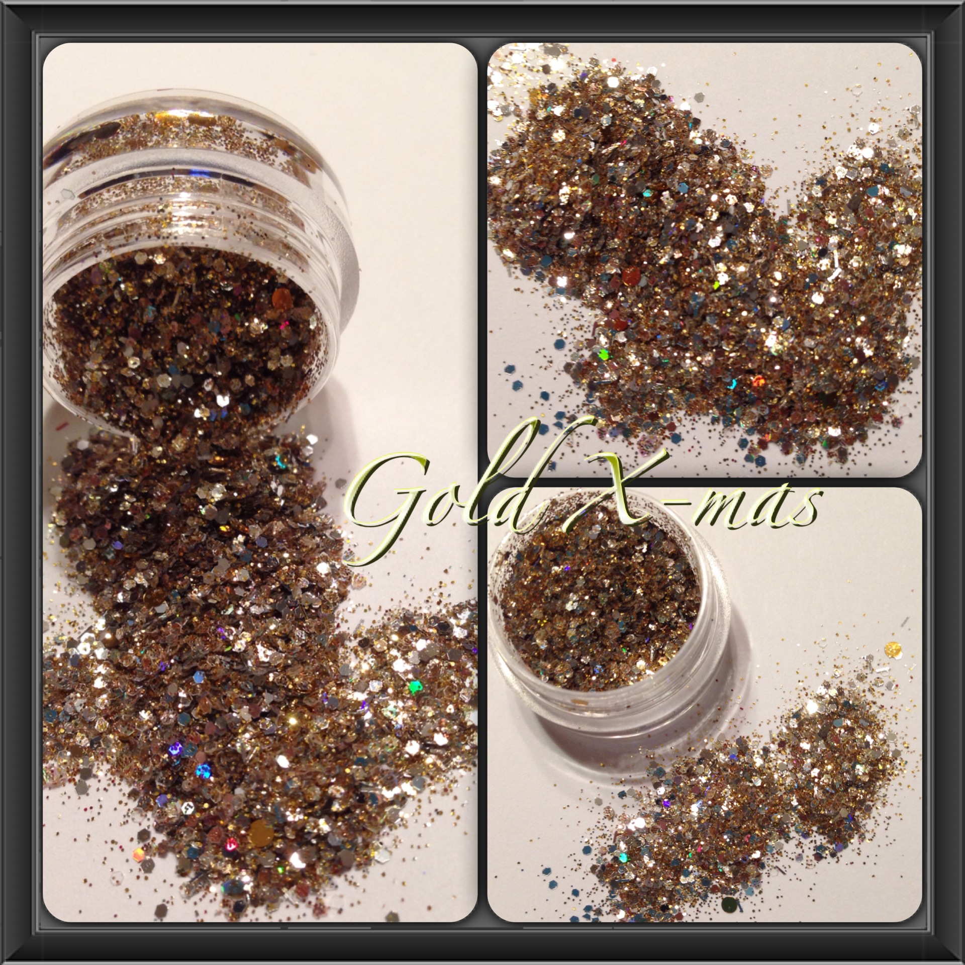 This is a beautiful Gold and Silver sparkling Christmas mix. This mix consist of a variety of gold and silver fine holographic glitter and silver hexagon glitter.