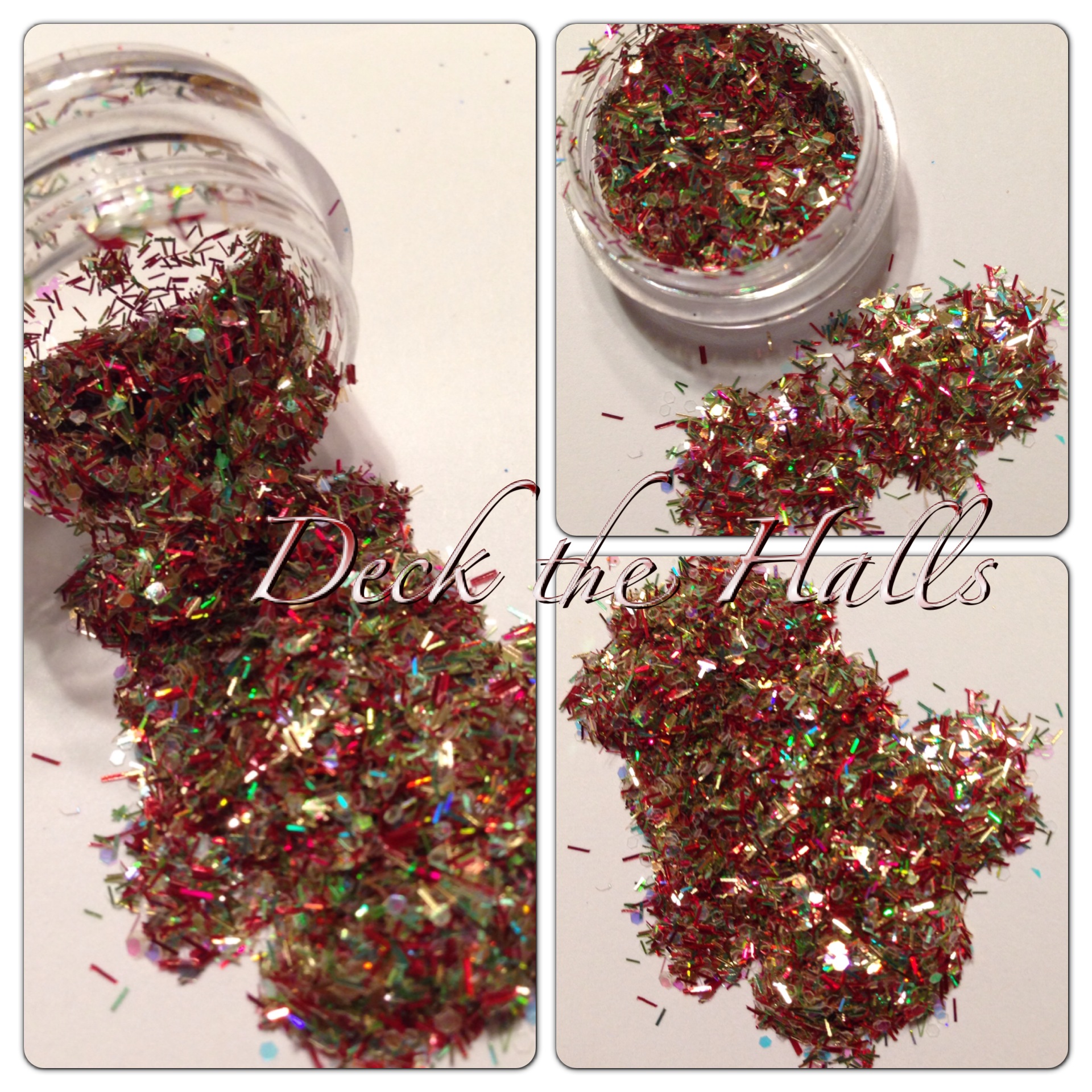 Beautiful and green, red, and gold sparkling Christmas mix. This mix consist of a variety of tinsel glitters, hexagon in different sizes, fine holographic glitter.